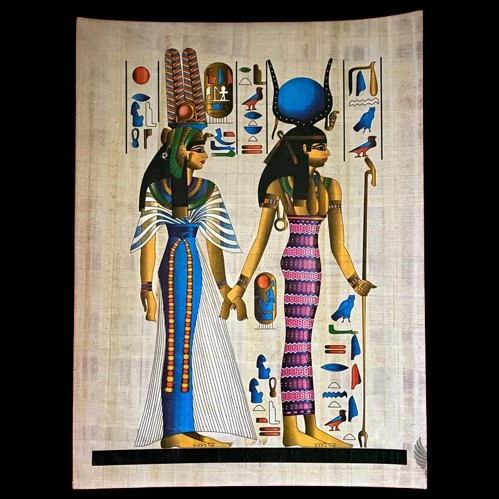 Ancient Egyptian Papyrus Painting of Queen Nefertari and Goddess Isis