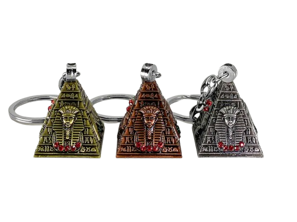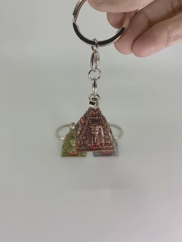 Sacred Egyptian Pyramid Keychain Set – Handmade Metal & Gemstone Gift for Luck and Blessings