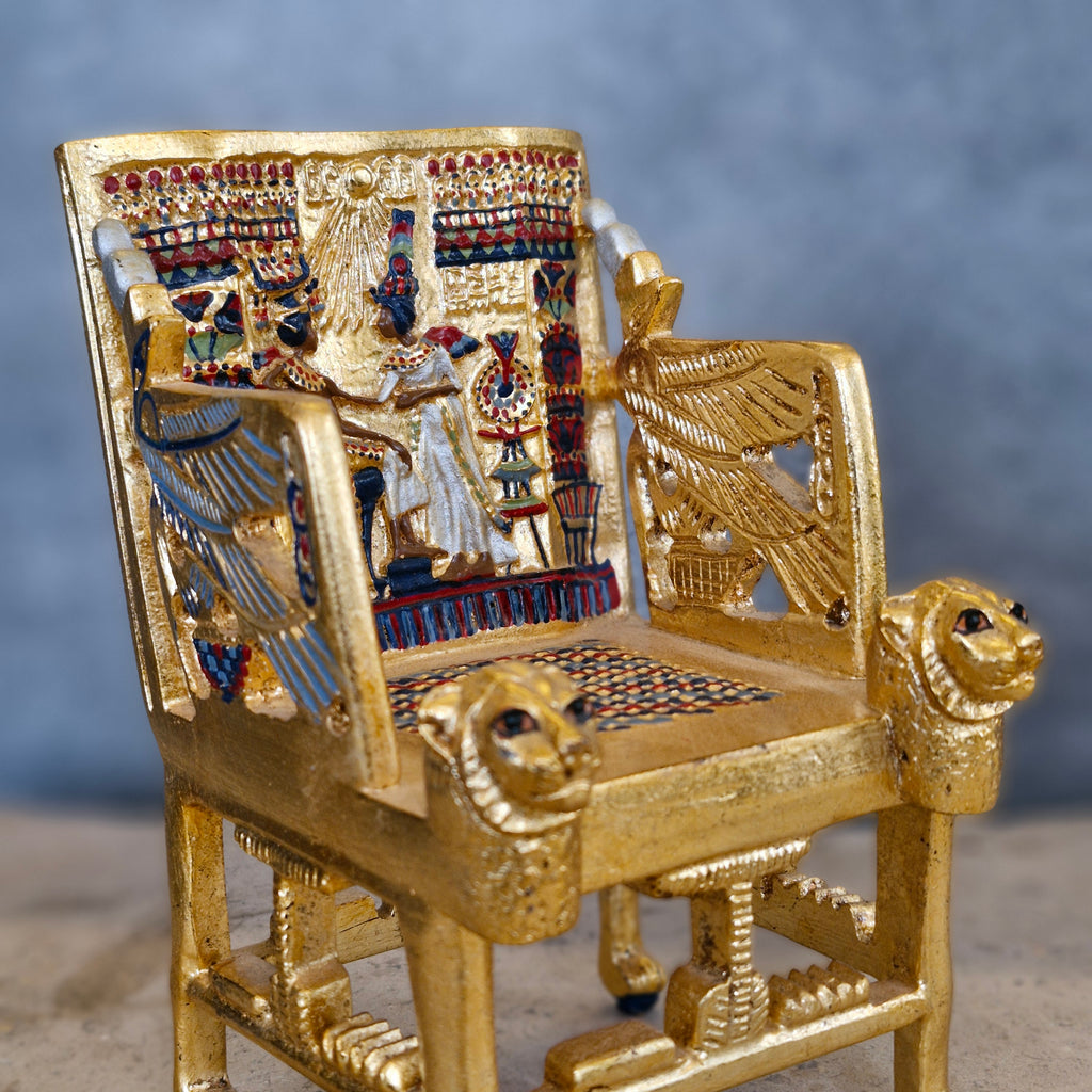 Own a piece of archaeological history with this expertly crafted replica of Tutankhamun's legendary golden throne – the same stunning masterpiece discovered in the Valley of the Kings in 1922. This magnificent reproduction captures every detail of the original 3,300-year-old treasure that dazzled the world.