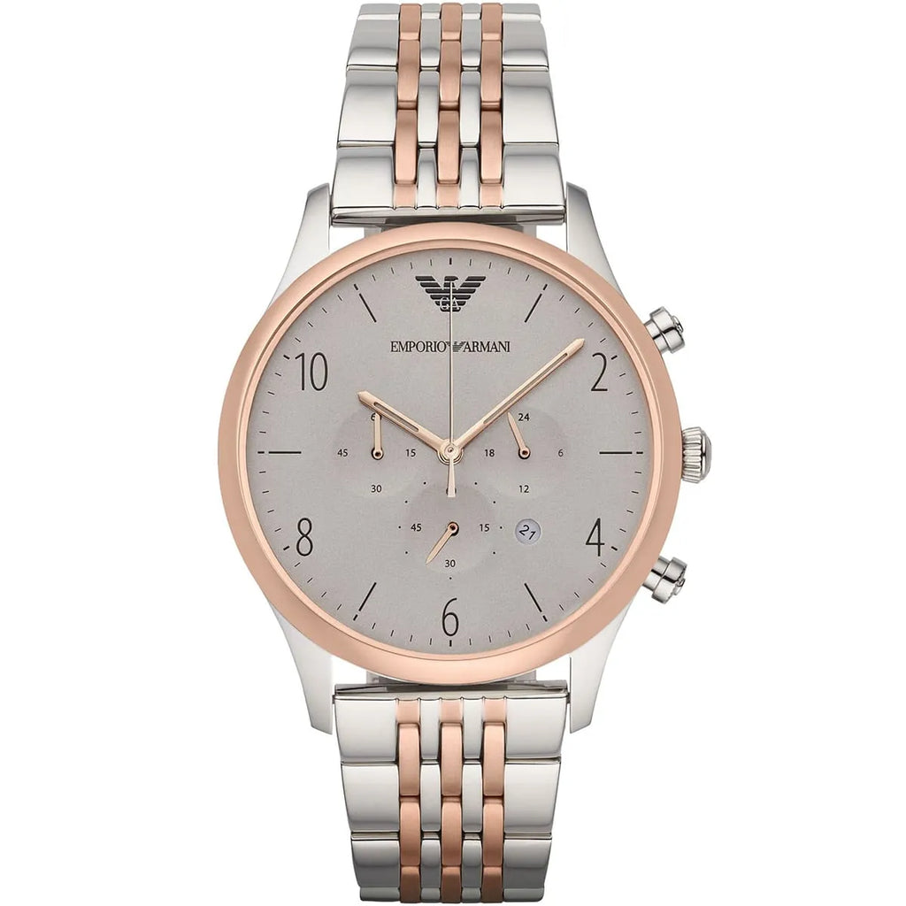 Emporio Armani Beta Large Men's Watch AR1864 | Gray Dial with Silver & Rose Gold Stainless Steel Bracelet