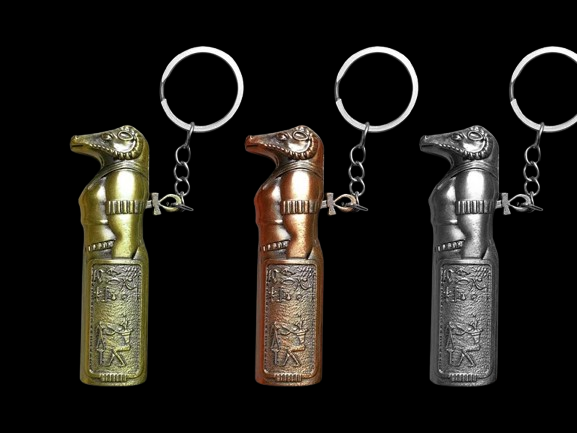 Unique Handcrafted Pharaonic Metal Lighter & Keychain Set – God Khnum – Ancient Egyptian God of Fertility & Protection