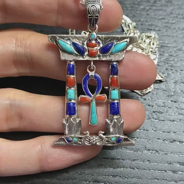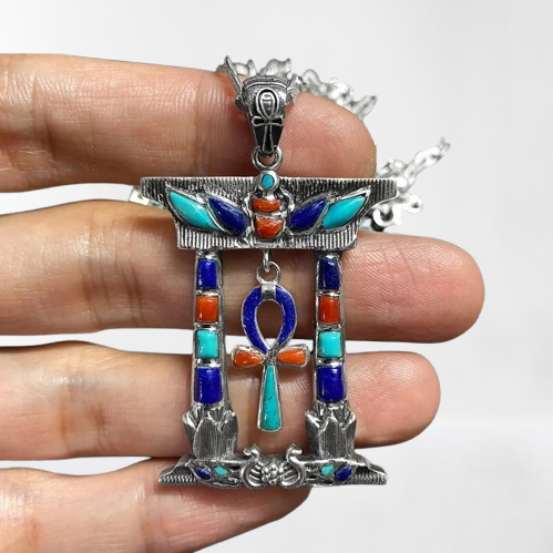 Wear the power of the pharaohs with this exquisitely handcrafted Ankh pendant, meticulously created by Egyptian artisans using pure 925 sterling silver and authentic divine gemstones – vibrant Lapis Lazuli, Turquoise, and Red Coral. More than just jewelry, this sacred amulet has been energized at the Giza Pyramids to channel protection, love, and eternal vitality.