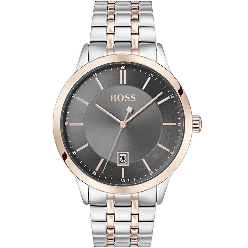 Hugo Boss Officer Men's Watch | Contemporary Gray Dial & Rose Gold/Silver Bracelet