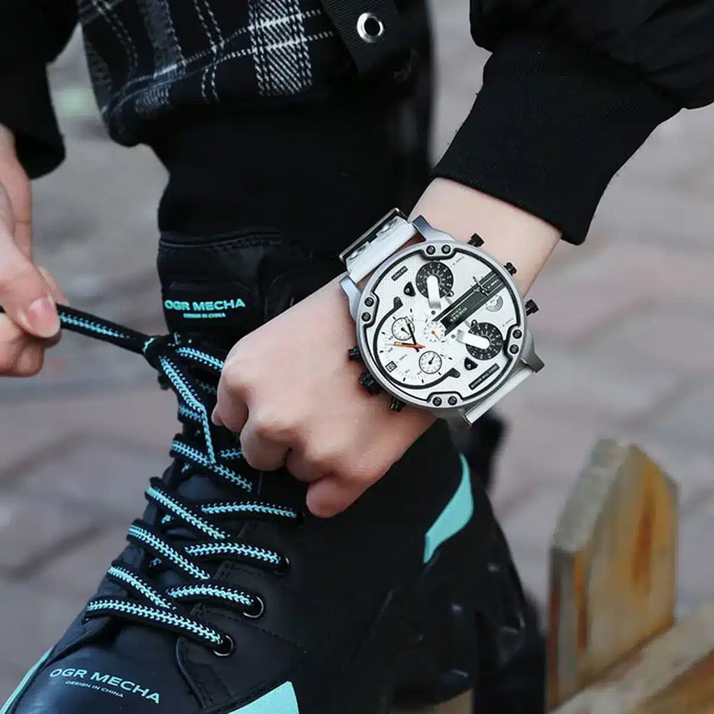 Stand out with the Diesel Mr. Daddy 2.0 DZ7401 – a striking men's watch that blends rugged style with modern sophistication. Featuring a bold 57mm round case, this timepiece makes a powerful statement with its crisp white dial and contrasting multi-strap design in white. Designed for the fashion-forward man, it combines edgy Diesel aesthetics with precision quartz movement for reliable timekeeping.